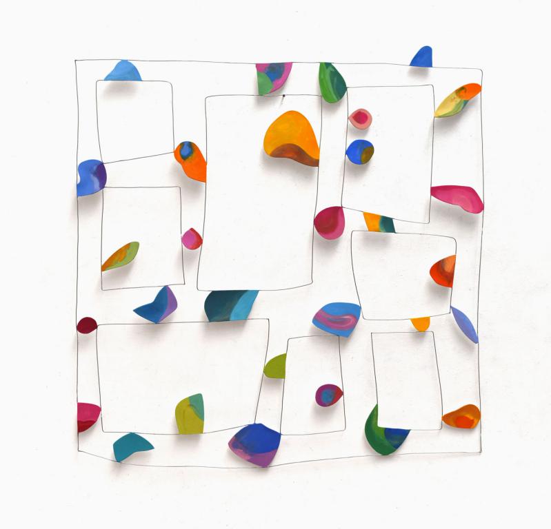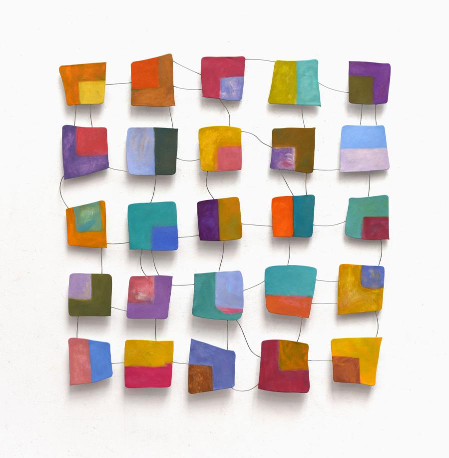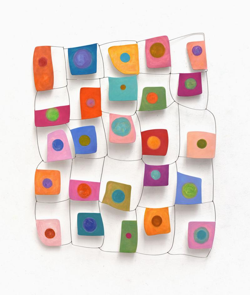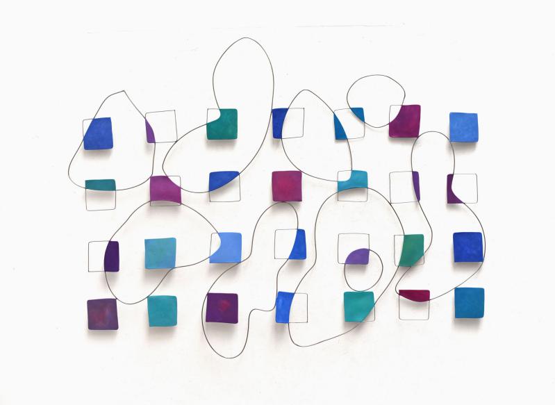 Echeveau de lignes, tissage de réel...Le métal, la ligne, l'espace et la couleur sont les vecteurs génériques de ce travail, au carrefour de la peinture et de la sculpture.