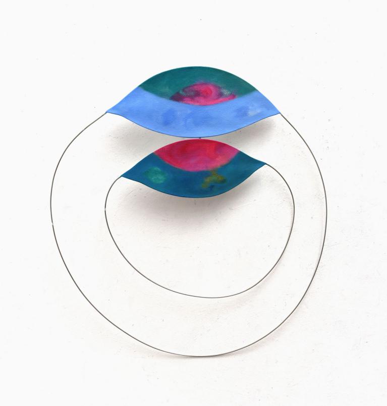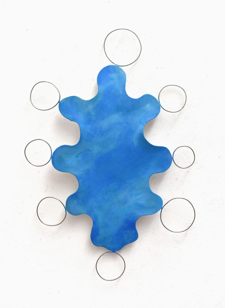 bleu suspendu acier inox, toile, époxy, fibre de verre, huile, 90 x 110cm, 2015